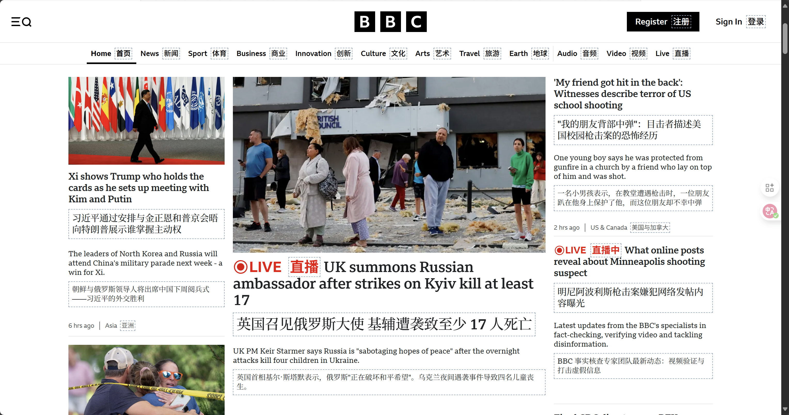 双语对照翻译是沉浸式翻译插件最大的亮点,我这里打开BBC的网站对比一下:
